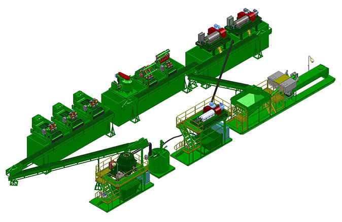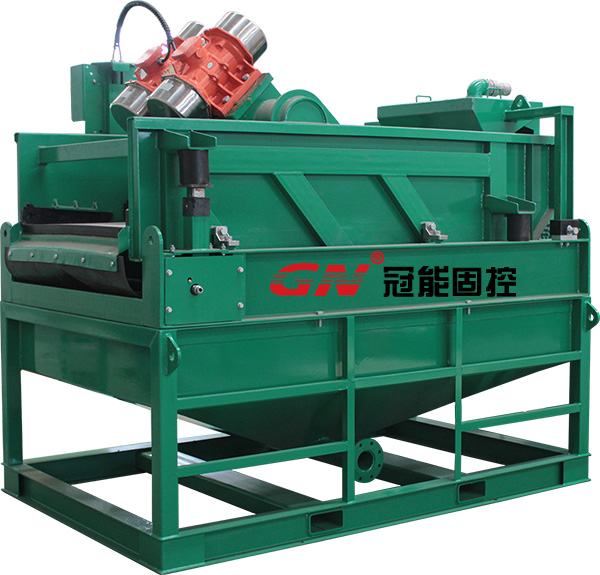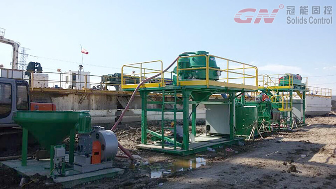冠能模块化废浆处理系统是将不同功能的设备制作成独立的小模块,包括钻屑输送装置、干燥筛装置、泥浆中转装置、甩干机支架模块、撬装离心机模块和标准岩屑盒。