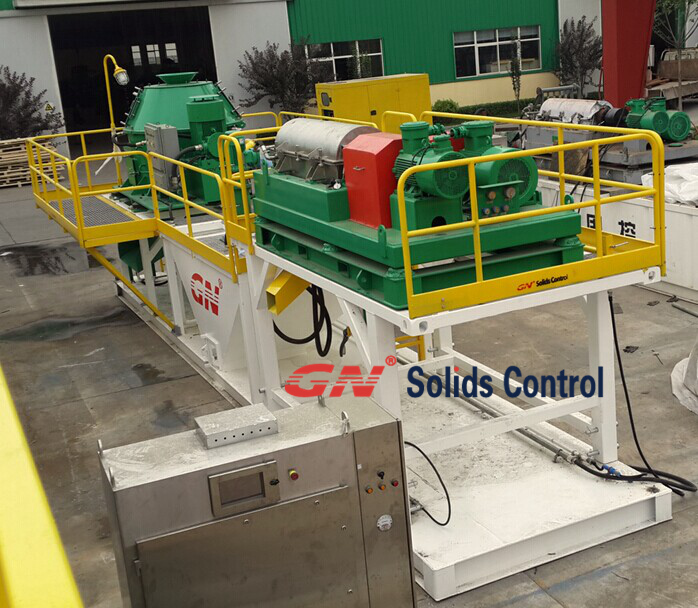 第三步:通过钻屑干燥机处理后排入泥浆罐的液相部分,它其中还包含了很多2-5微米的细小固体颗粒,通过立式渣浆泵将液相部分提供给GNLW363B-VFD卧螺离心机进行处理。