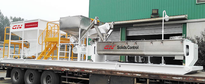本套系统分为2个阶段的固控处理和一套泥浆配置混合系统。钻井泥浆初步分离采用的是冠能GNZS752型振动筛,200GPM的处理能力、两片筛网的构造用来处理钻井泥浆中的大颗粒的固体。振动筛处理后的液体通过离心泵输送给迷你型的沉降离心机GNLW223进一步处理,可达3800RPM的转速,分离的固体颗粒可达到2个微米。