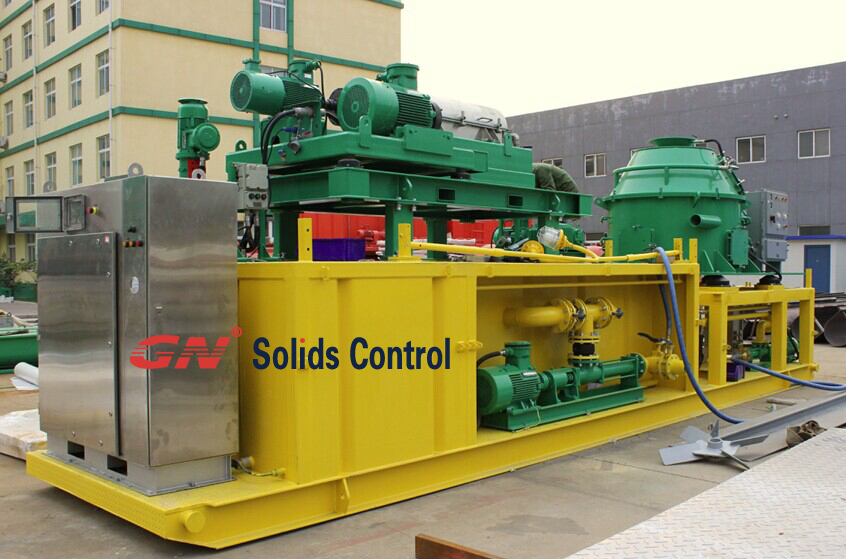 2、排出的干渣经过另一台螺旋输送机输送至收集处,液体流向离心机进行第二步的精细固液分离处理。分离干净的泥浆储存起来准备钻机继续回用。